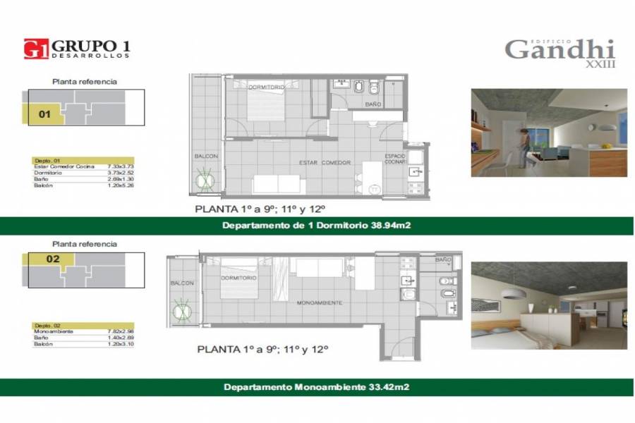 1119-AE00479 Rosario: Av. Francia 735 (Entre Córdoba y Santa Fe), Edificio GANDI XXIII – Unidad 3 – Pisos disponibles: 1 (con patio balcon), 6, 7, 8, 9, 11 y 12 Monoambiente de 35 m2. cubiertos + balcon 1 m2 total 36 m2, (piso 1 patio 16 m2 Total: 52 m2). Orientación Oeste. Entrega: Abril 2019. Forma de pago: Entrega: 40 por ciento. Saldo: 53 por ciento en 60 cuotas mensuales ajustables por el I.C.A.C. y 7 por ciento contra la posesión. Descuento por pago contado. Descripción del emprendimiento: Pensado y diseñado para tener bajas expensas y mínimo mantenimiento. Cocheras en subsuelo y planta baja. Espacio para bicicletas. Local comercial en planta baja. Ingreso vehicular con control remoto. Balcones terraza. Parrillero y pérgola en azotea. Solarium. Laundry. Terminación en hormigón visto. Ascensores de última generación con puertas automáticas. Revestidos en acero inoxidable y espejo, piso de mármol o granito. Iluminación inteligente. Características: Amoblamiento de cocina completo con alacenas y bajo mesadas. Barra desayunadora. Preparado para instalación de TV por cable, teléfono e internet. Preparado para instalación de refrigeración y calefacción por splits. Aberturas de aluminio de piso a techo con vidrio laminado de seguridad. Puertas de ingreso reforzadas (opcional blindado). Pisos y revestimientos de porcellanato. Equipamiento completo en baños (espejo y accesorios). Anafe, horno y purificador eléctrico de primera marca. Termotanque. Mesadas de granito. Sanitarios y griferías de primera marca. Puertas interiores de madera. Terminaciones de calidad. Amenities: Parrilla, solárium. Entorno: Zona macrocentro, barrio Lourdes, típico barrio pericentral de Rosario. Presenta una alta densidad de edificios y torres en altura, sobre todo en el sector cercano al Bulevar Oroño. Hacia el oeste va disminuyendo la densidad de torres y se acentúan los rasgos de barrio residencial. Se encuentran algunas instituciones del gobierno local en el barrio, tales como la Guardia Urbana Municipal y algunas secretarías. Además es sede de la Cárcel Unidad III. En el extremo sudoeste, cerca de la esquina de Oroño y Pellegrini, se encuentra el Museo Municipal de Bellas Artes Juan B. Castagnino.